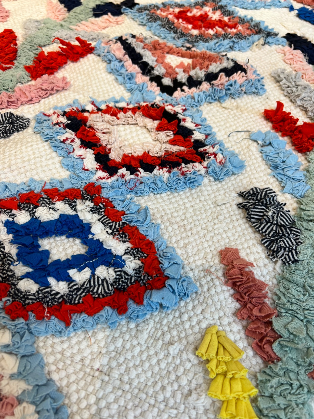 モロッコのアジラルで作られた、お花の模様がかわいいミニラグです。肌触りも抜群でさらっとした感触が気持ち良いです。玄関先やリビング、寝室などのお部屋に敷いて、一気におしゃれ度がアップします!